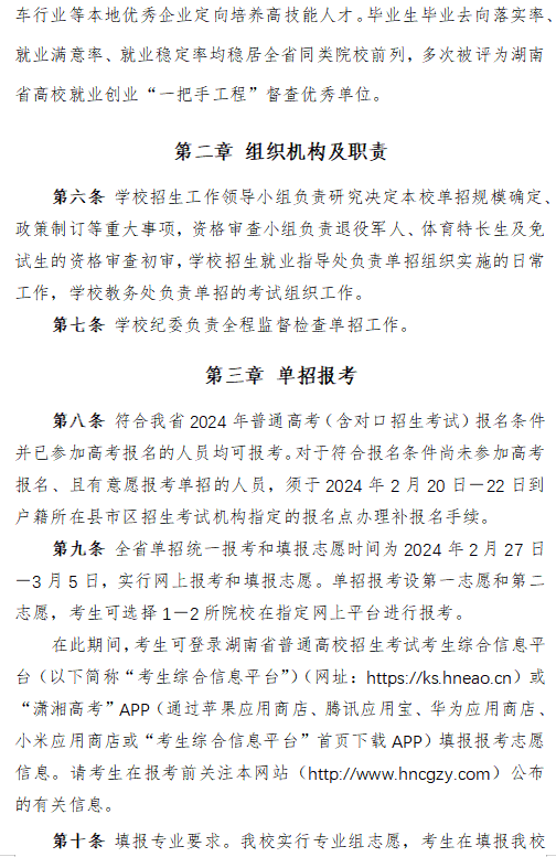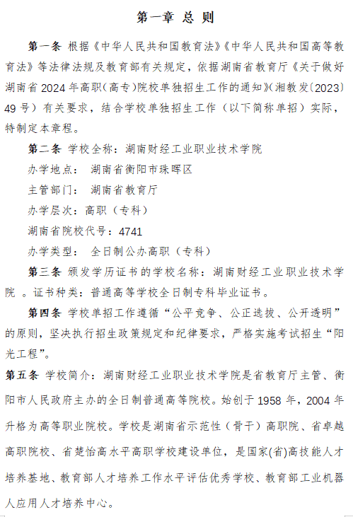 详情【湖南财经工业职业技术学院2024年高职单招章程.docx】